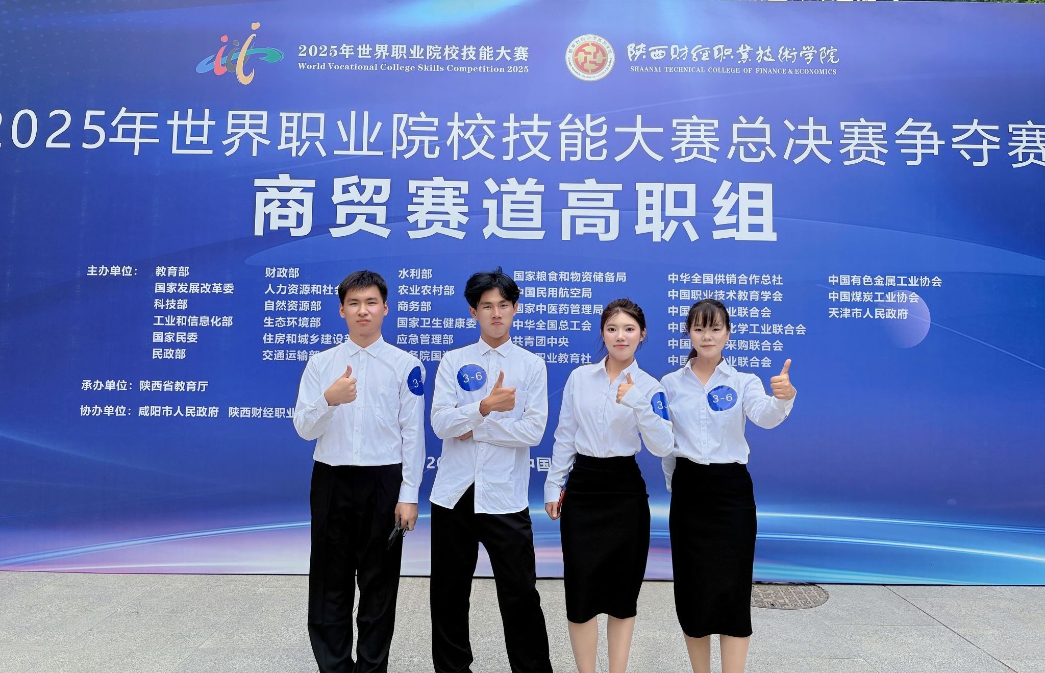 商贸赛道在陕西举行,216支参赛队伍汇聚一堂,在操作中交流经验、竞争中提升技能。国际贸易学院吴星、李小玲老师指导的高小芸、钟兰、孙昌志、冯礼召等同学组成团队,围绕电子商务行业企业核心岗位,展示数据分析、短视频创作、直播营销、运营管理及平面设计等关键专业技能,凭借稳定的心态和扎实的能力,最终夺得铜奖。