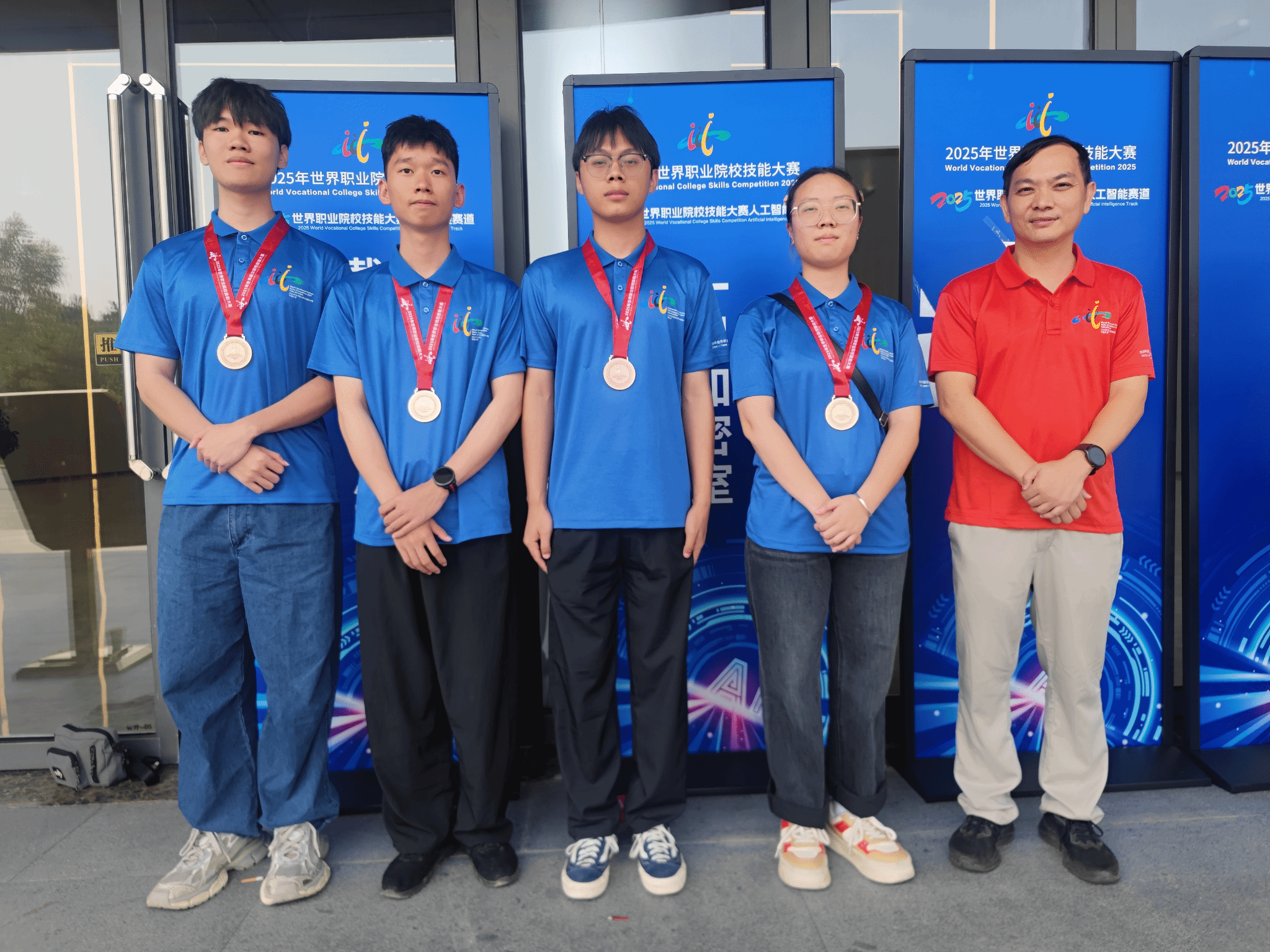人工智能赛道在北京举行,124支代表队激烈比拼,在四天的比赛里围绕人工智能相关生产、管理、服务一线真问题、真场景,自主设计相关内容,展示真技能。由信息技术学院王忠、符龙生老师指导的刘佳、方顺、林齐辉、余灿等同学展现出优秀技能水平和项目创新等能力,摘得铜奖。