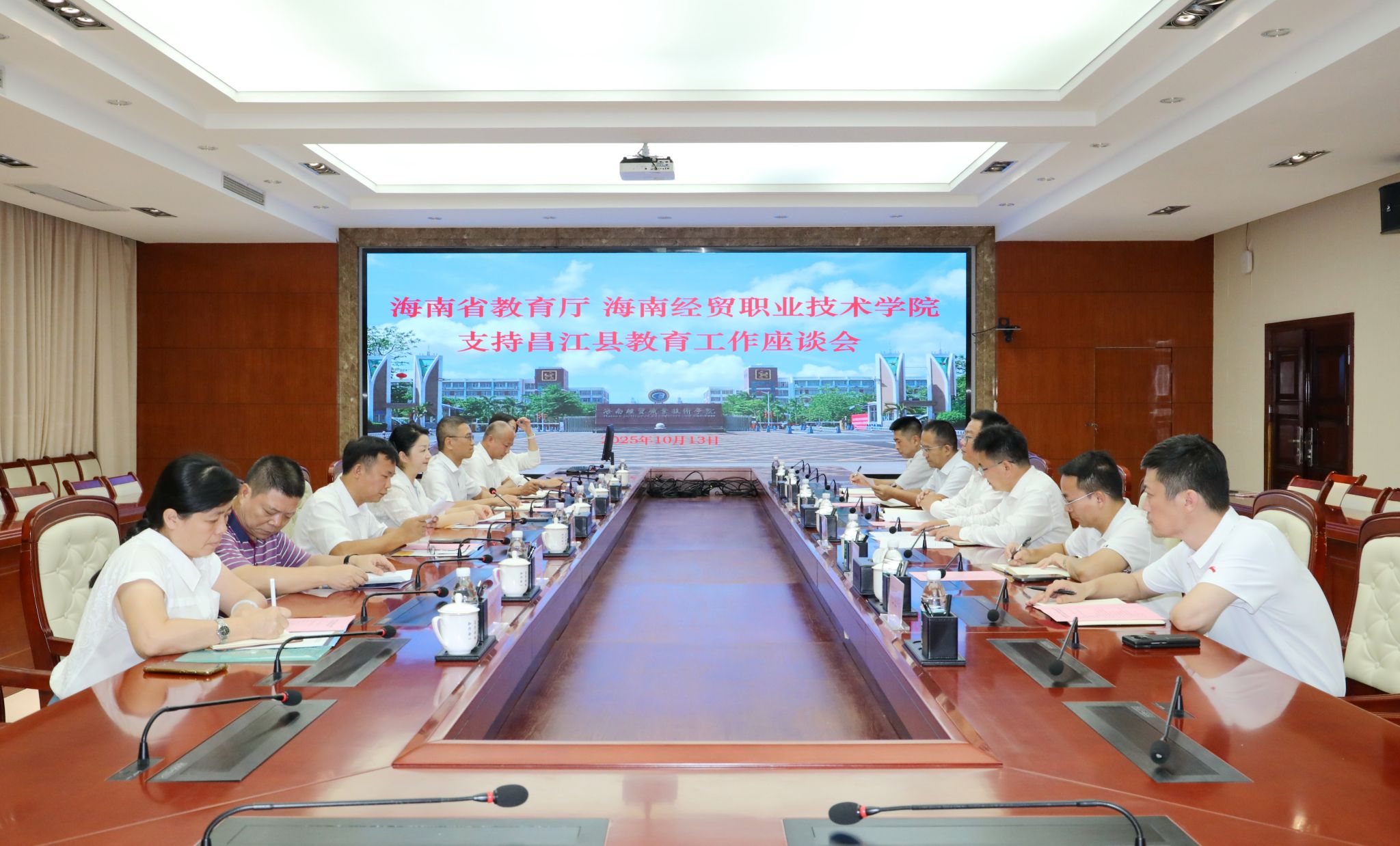 2025年10月13日,省教育厅、400全讯白菜网官网支持昌江黎族自治县教育工作座谈会在学校召开。省政府教育总督学李渝凤、昌江县副县长黄华星,400全讯白菜网官网党委书记王华,党委副书记、校长崔昌华出席会议。