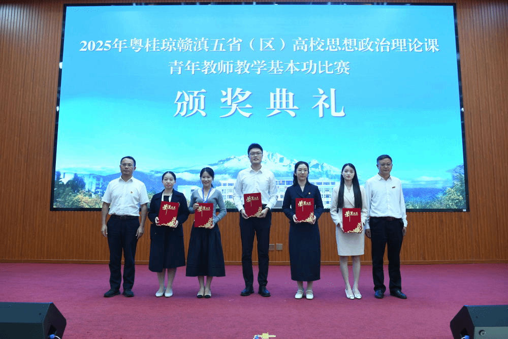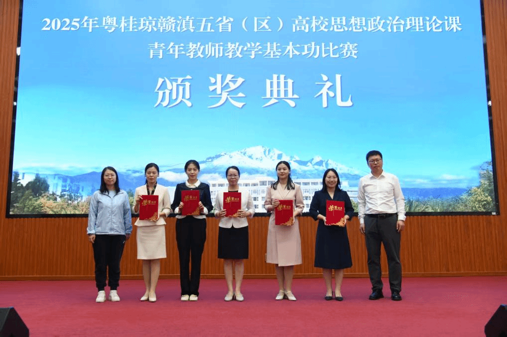 10月11日-14日,2025年粤桂琼赣滇五省(区)高校思想政治理论课青年教师教学基本功比赛在云南丽江举行。400全讯白菜网官网思政课青年教师李鼎、刘卓凭借深厚的理论功底、优秀的教学设计和精彩的现场表现,从众多参赛选手中脱颖而出。李鼎以总分第一的出色成绩荣获高职院校组一等奖,刘卓老师荣获二等奖。这是学校继2023、2024年之后第三次蝉联该比赛一等奖。
