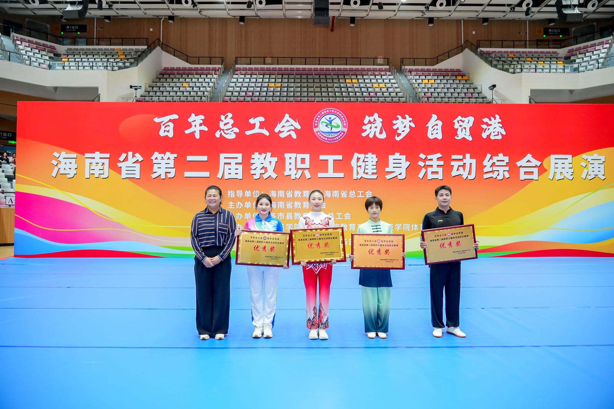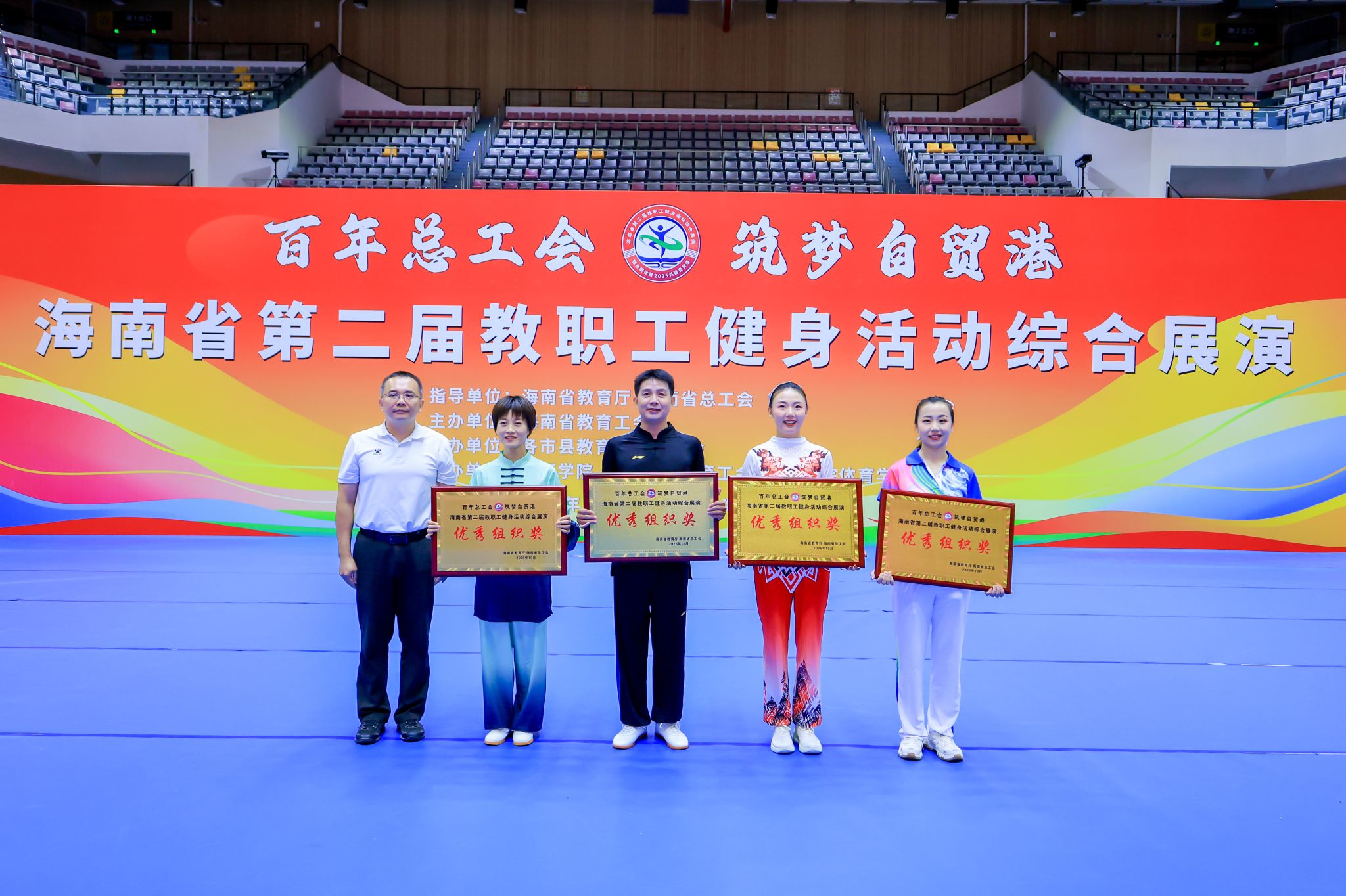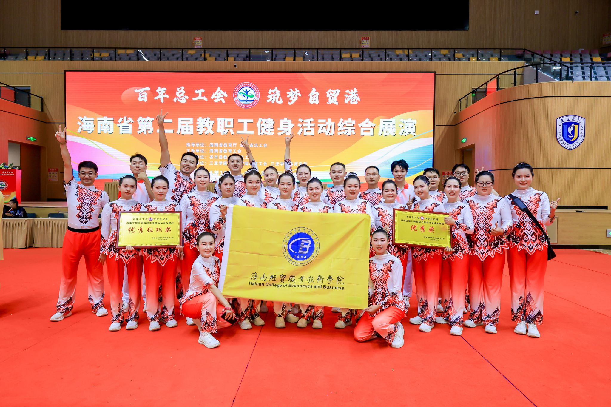 近日,由海南省教育厅、海南省总工会举办的“百年总工会 筑梦自贸港”海南省第二届教职工健身活动综合展演在三亚开展高校组竞演。400全讯白菜网官网组织30名教职工参赛,荣获优秀奖和优秀组织奖。