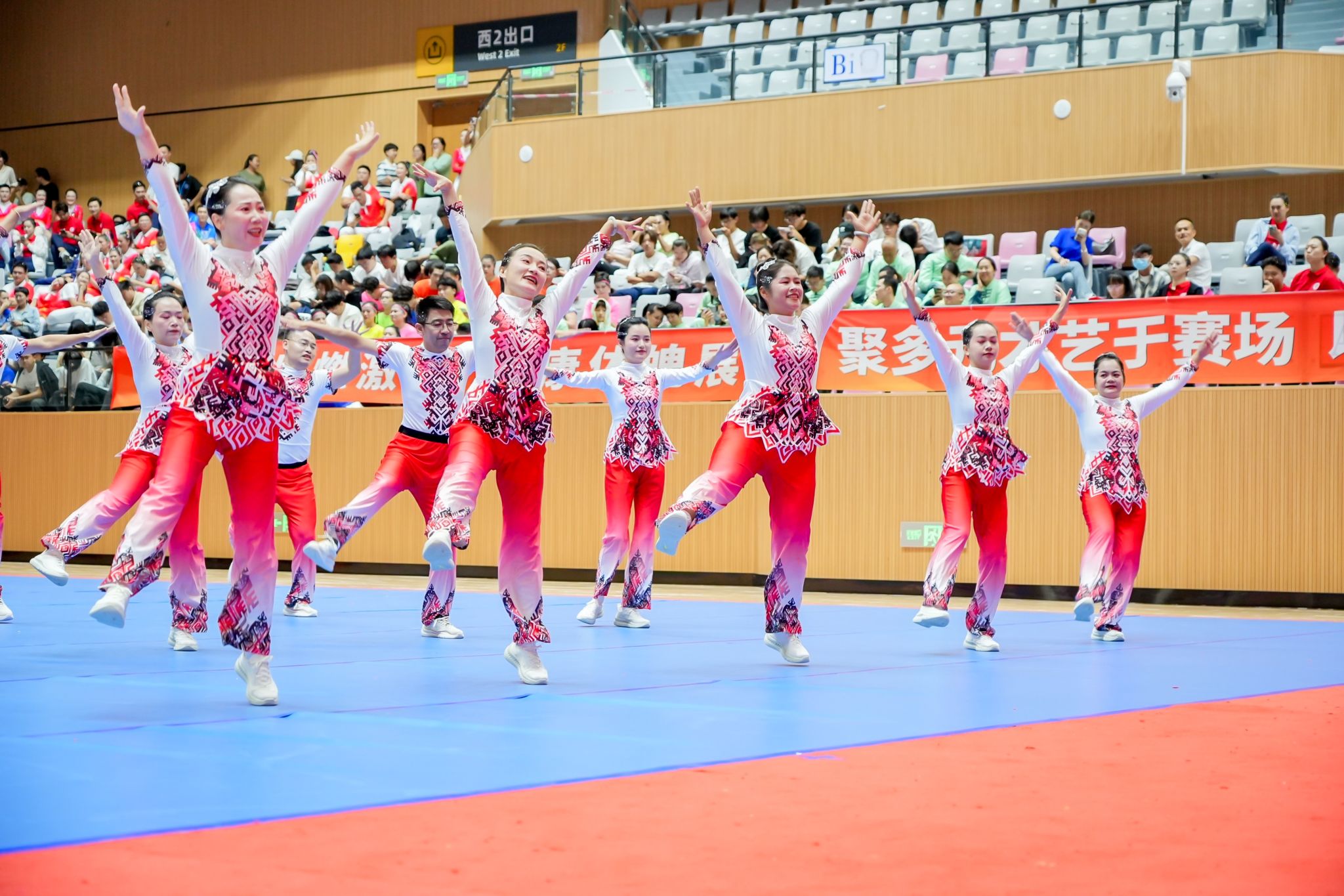 参赛教职工们利用课余和休息时间积极准备,反复打磨动作细节、优化队形编排。比赛现场,伴随着动感激昂的《与时代共舞》,队员们身着统一服装,精神饱满地登场。从整齐划一的肢体动作到富有感染力的面部表情,从紧密配合的队形变换到紧扣主题的舞蹈创意,队员们将对教育事业的热忱与对时代脉搏的感悟融入每一个舞步,生动诠释了《与时代共舞》的主题内涵,展现出全讯白菜网教职工健康向上、团结协作的良好形象,赢得了评委与现场观众的阵阵掌声。