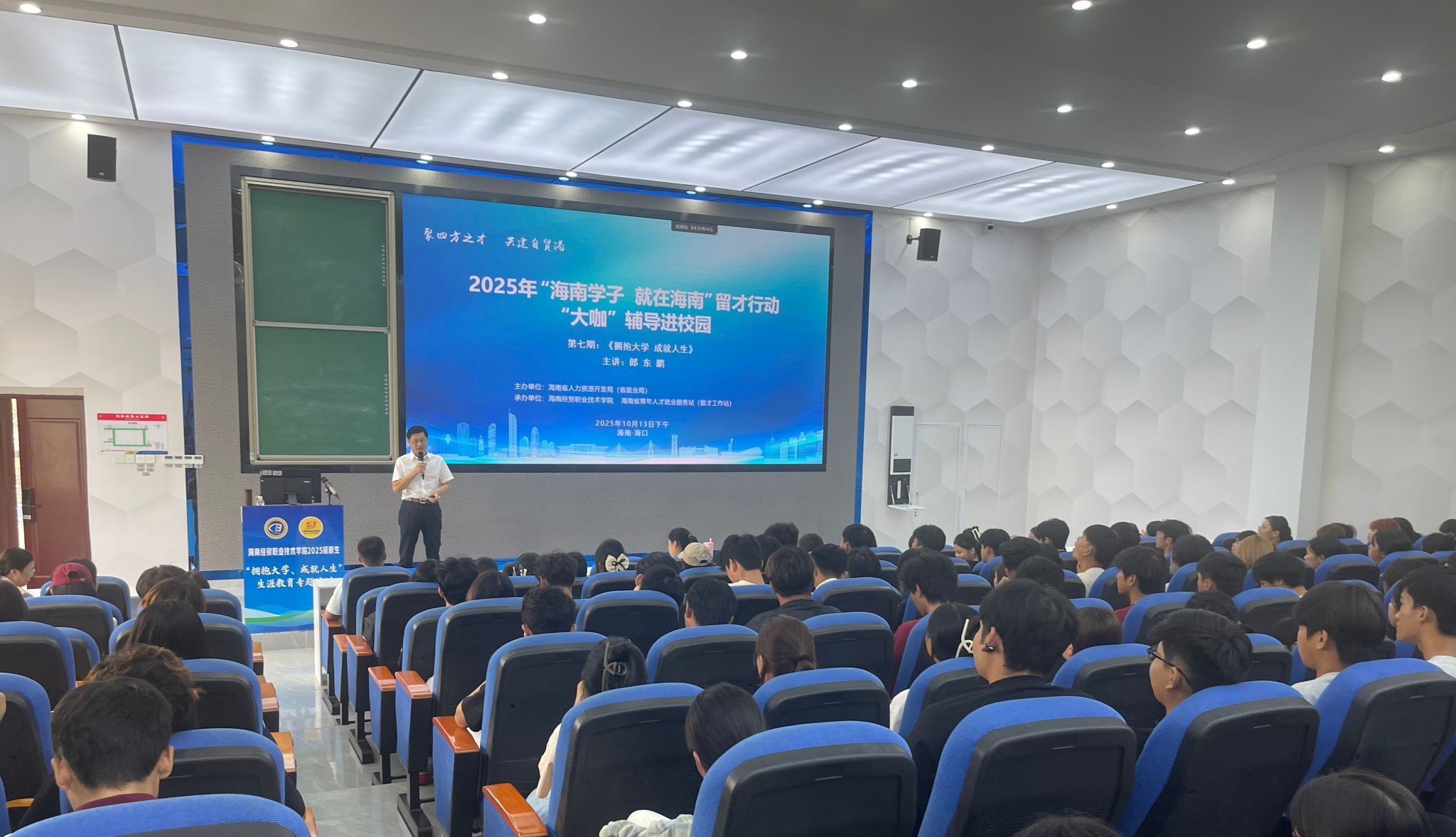 郎东鹏围绕“大学生涯三问”“大学生涯的八个主题”等内容进行系统讲解。他结合多年生涯教育研究经验与典型案例,深入浅出地解析职业发展逻辑。“职业不仅是谋生手段,更是实现人生价值的核心载体。确立人生目标后,需以职业为锚点,精准匹配自身能力与岗位需求,在创造社会价值的过程中实现自我超越。”他鼓励同学们,要充分依托全讯白菜网的专业优势,紧盯海南自贸港特色产业布局,提前规划职业路径,将个人成长轨迹与自贸港建设的时代机遇深度融合。