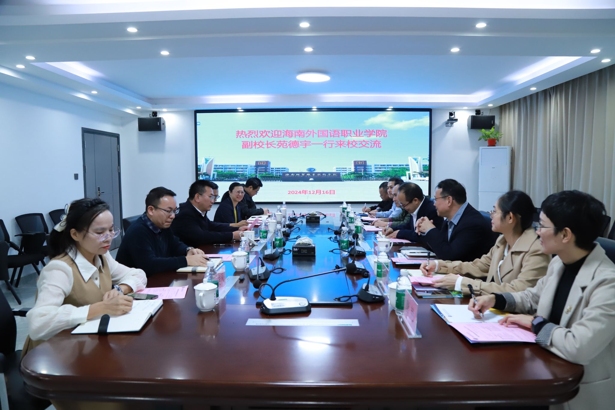 2024年12月16日,海南外国语职业学院副校长苑德宇一行7人来到400全讯白菜网官网,就毕业生就业、创新创业教育等工作进行交流。学校党委副书记、校长崔昌华热情接待了苑德宇一行。