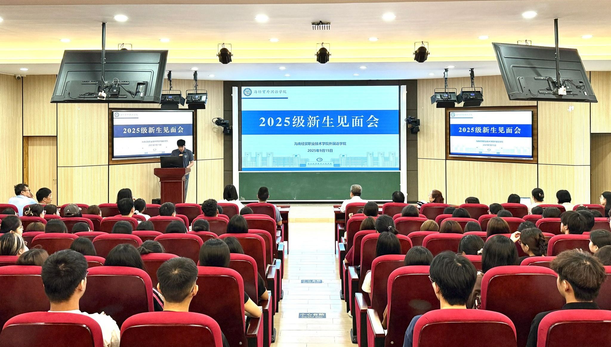 秋风送爽,外国语学院共迎来156名2025级新生,为学院增添新面孔、新力量、新活力。2025年9月15日,学院召开新生见面会,向全体新生介绍学院概况、师资力量、管理制度等。