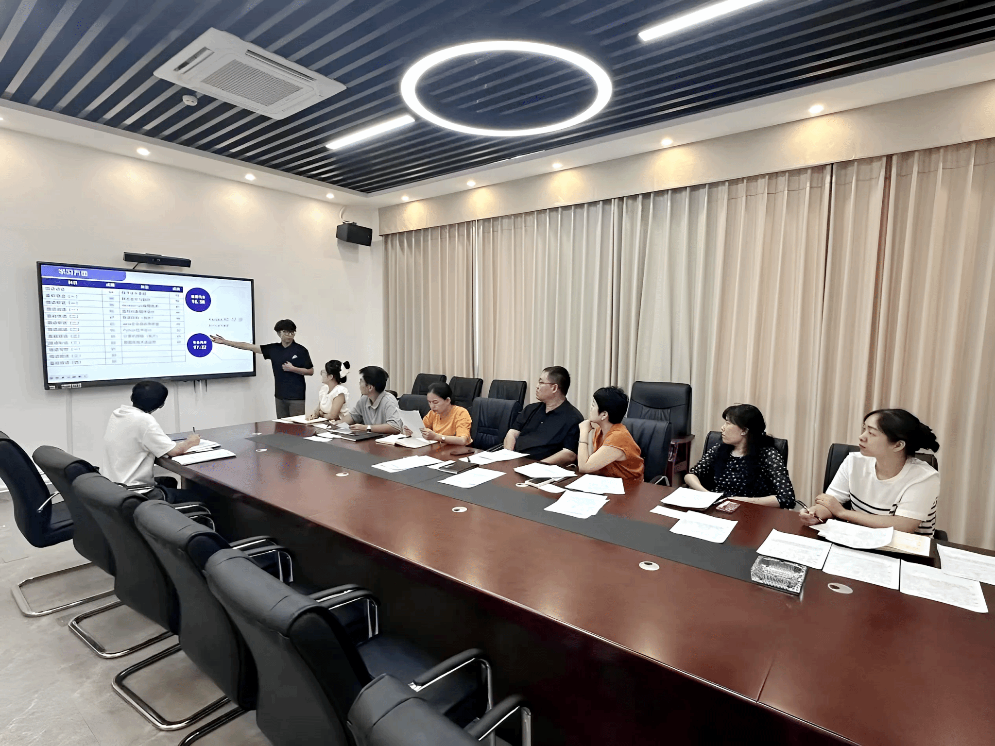 为保障评选公平公正公开,学院奖助学金评审小组以高度责任心和专业素养,依据评审标准,从学习成绩、竞赛成果等维度全面考察候选人。答辩环节中,候选人依次通过演示文稿展示过往学习成果,充分展现竞赛表现、志愿服务等优势,彰显同学们积极向上、全面发展的风貌。